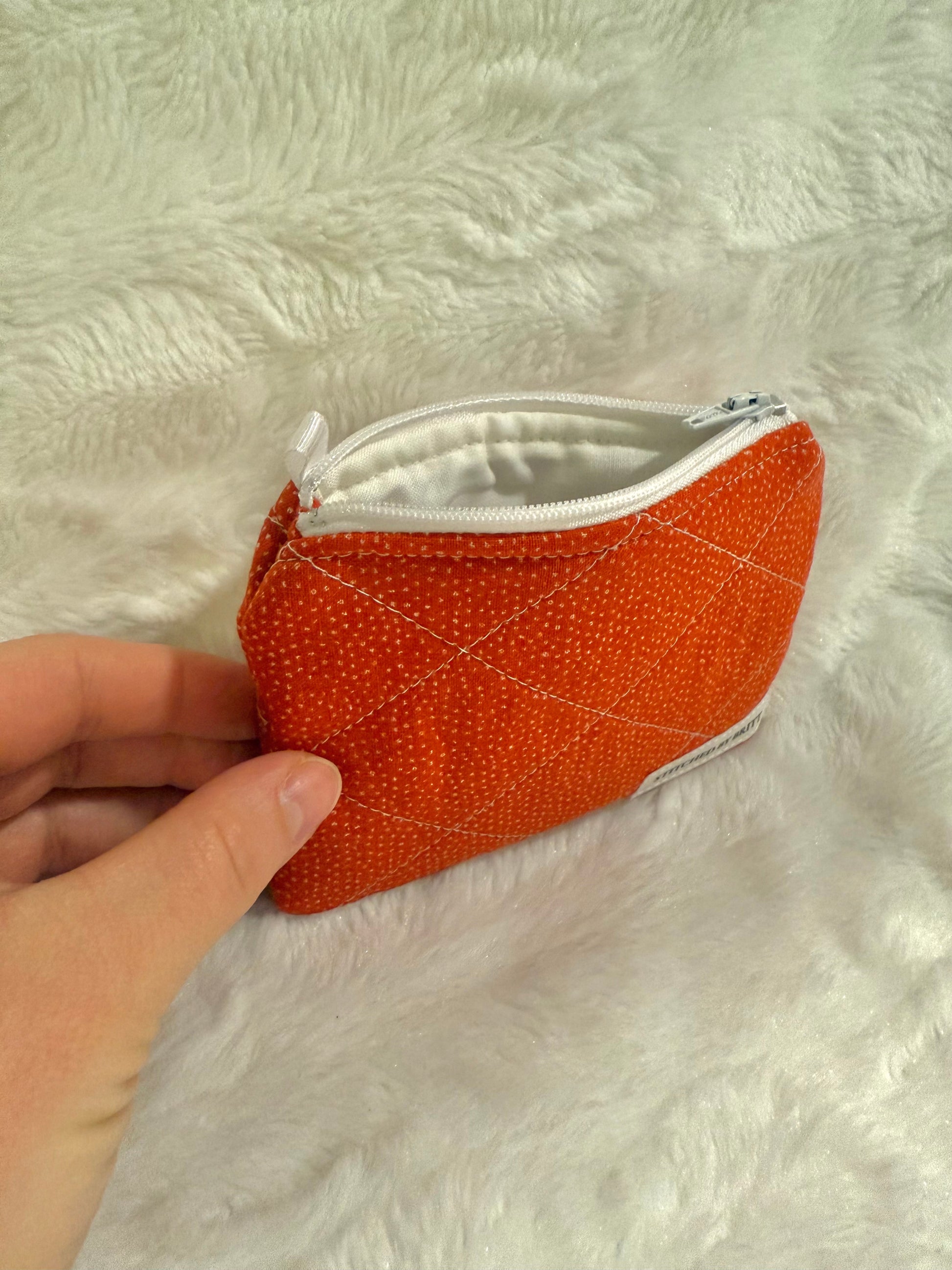 These cute zip pouches are perfect for credit cards, ID, ChapStick, or similar items on the go. Comes with a white fabric loop to hook to a lanyard or keychain. Take a look at the color combinations and pick your favorite!